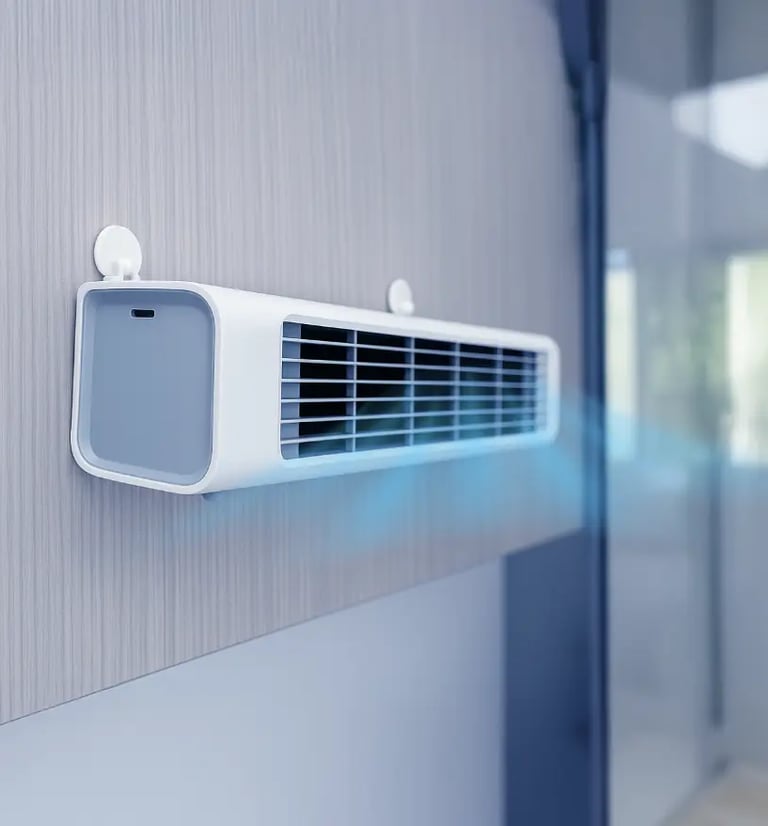 BreezaMax bietet drei Intensitätsstufen: Eine sanfte Brise für entspannte Abende, einen komfortablen Wind für den Alltag und einen starken Luftstrom für richtig heiße Tage. Mit der Fernbedienung können Sie alles steuern, ohne aufzustehen – ein Feature, das besonders in großen Wohnungen oder Büros in Städten wie Frankfurt geschätzt wird. Das Gerät kann vertikal, horizontal platziert oder sogar an der Wand befestigt werden, dank der mitgelieferten Klebestreifen. Kein Bohren, kein Werkzeug nötig!